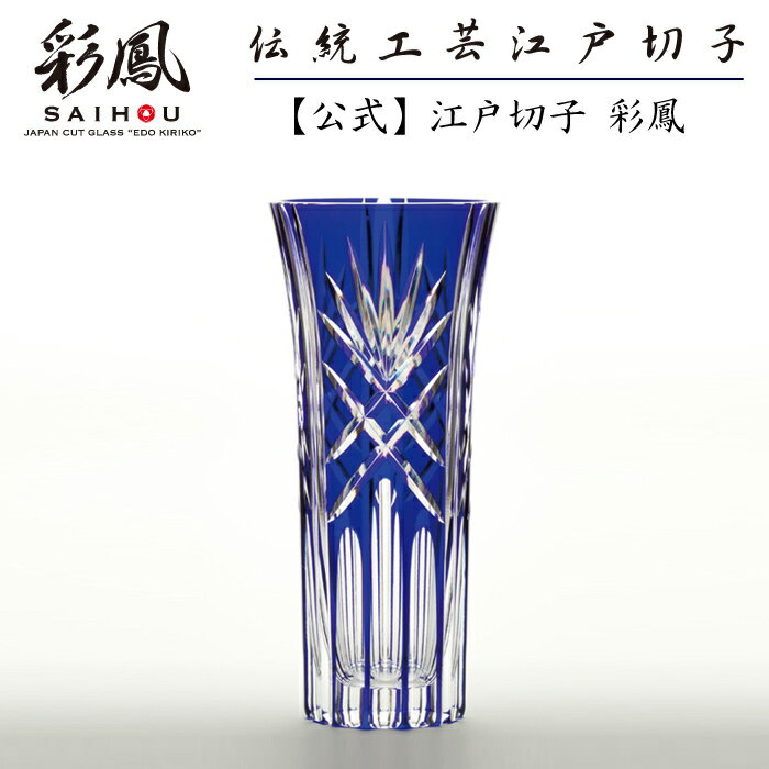 江戸切子 花瓶 【硝子工房 彩鳳 直営店】 剣矢来文様 クリスタル天開花瓶 ルリ 木箱入り ※名入れ・・・