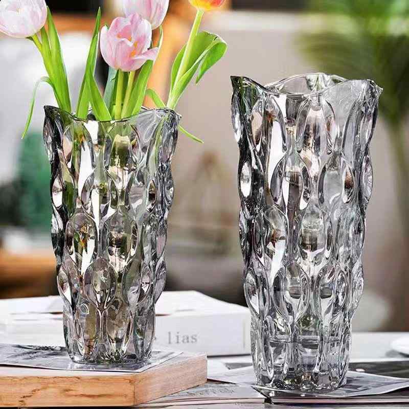 花瓶 フラワーベース ガラス製 透明 クリア 氷河クリスタルデザイン 高級感 上品 エレガント リビ・・・