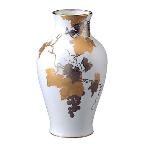皇室御用達 大倉陶園 日本製 金蝕ぶどう 36cm花瓶 [ブランドロゴ入りギフトBOX] 【ギフト ・・・