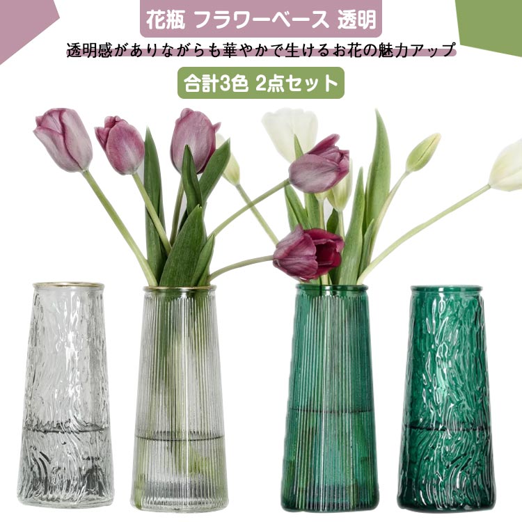 花瓶 フラワーベース 透明 韓国 北欧 かびん 2点セット インテリア ガラス 水栽培 ポット シン・・・