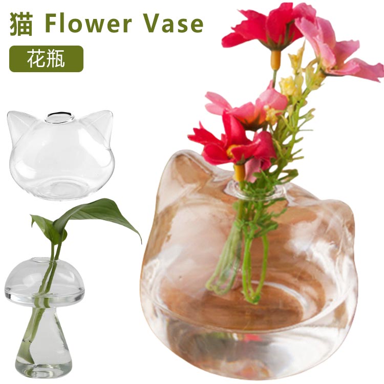 涼しげ 猫 フラワーベース かわいい 涼しい 雑貨 一輪挿し 花瓶 プレゼント 猫型 おしゃれ 小さ・・・