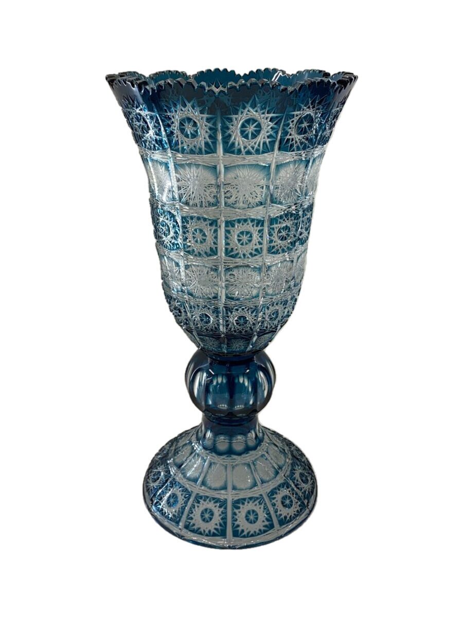 【中古】BOHEMIA GLASS(Crystal)◆花瓶/ブルー/フラワーベース【インテリア小物・・・・