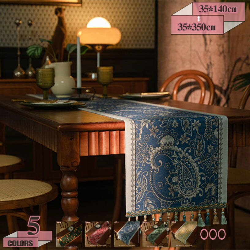 300円OFFクーポン テーブルランナー タッセル付 ジャカード センタークロス 北欧 ボヘミアン ・・・