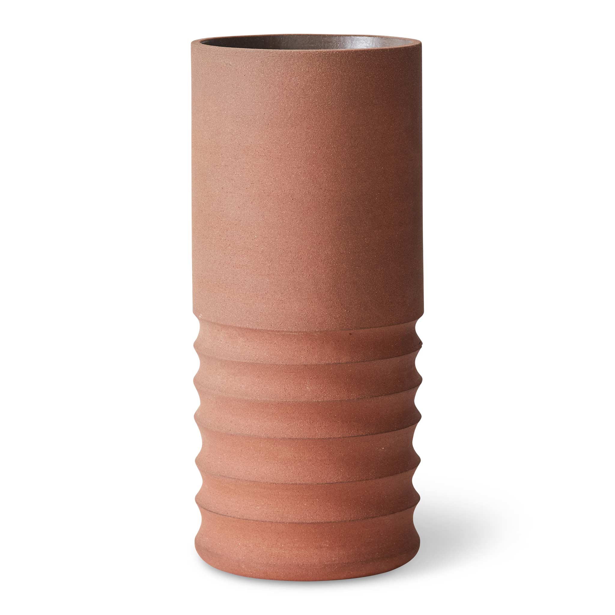 HKliving 温かみのあるアースカラーと彫刻的なラインのテラコッタ製フラワーベース Tube 高・・・