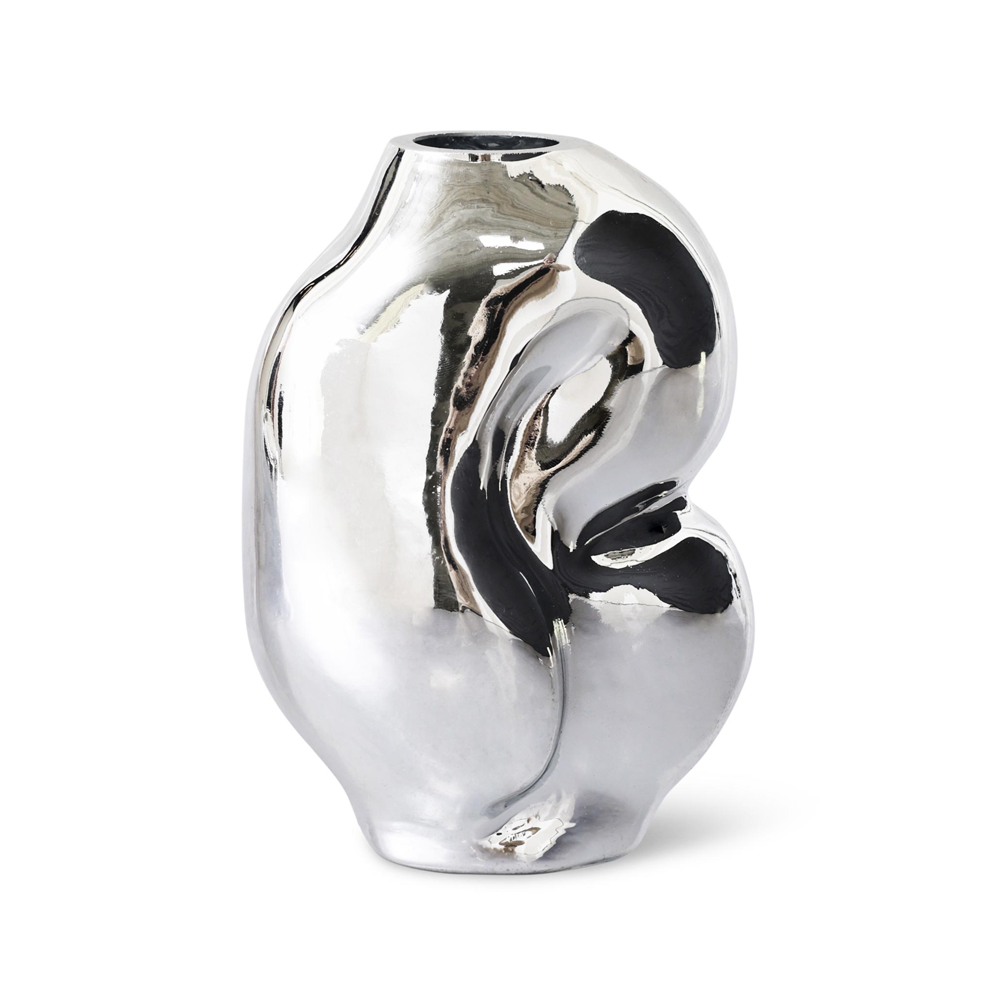 HKliving 有機的なフォルムのガラス製フラワーベース Gleam 高さ18cm クロームシルバ・・・