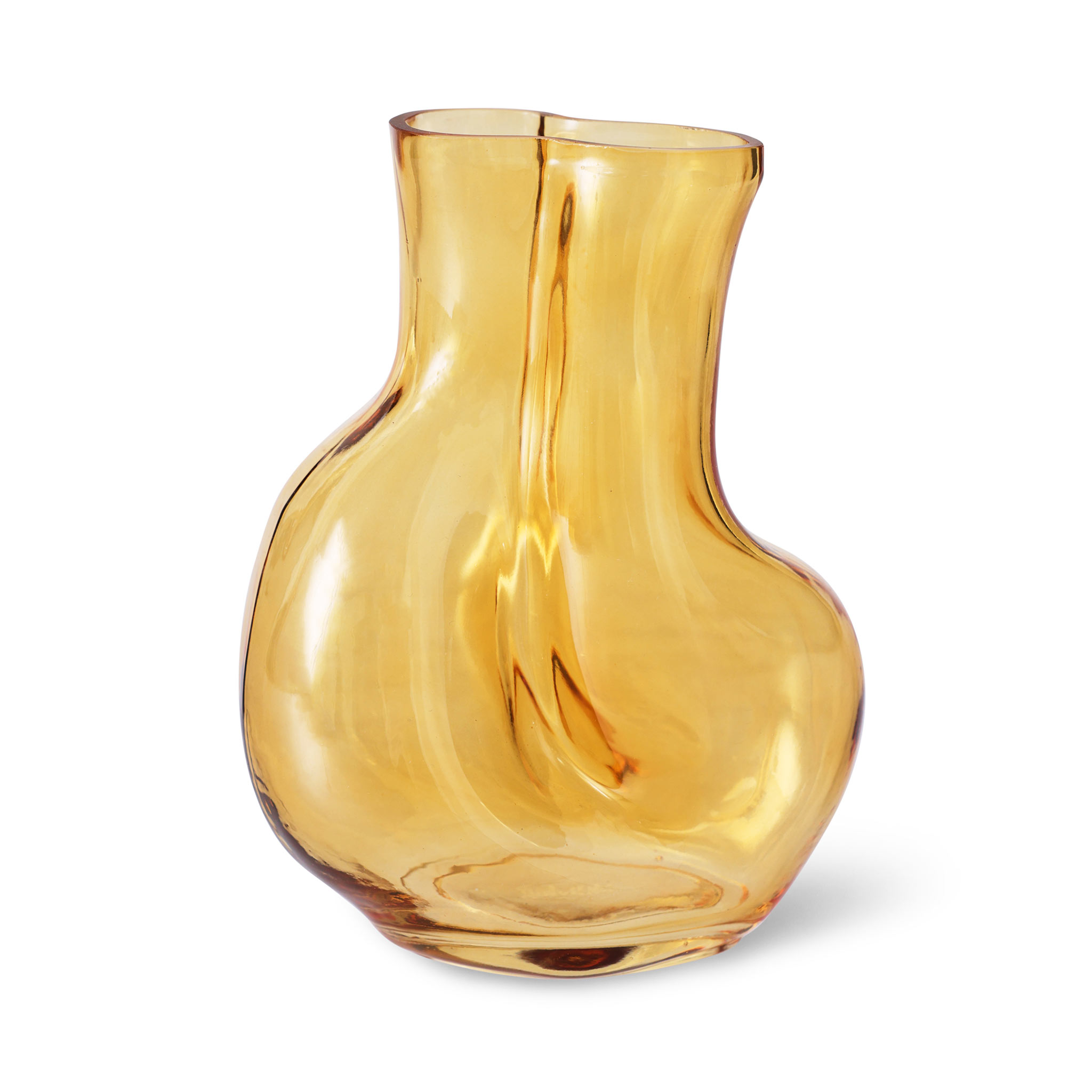 HKliving 有機的なフォルムのガラス製フラワーベース Gleam 高さ22cm アンバーイエロ・・・