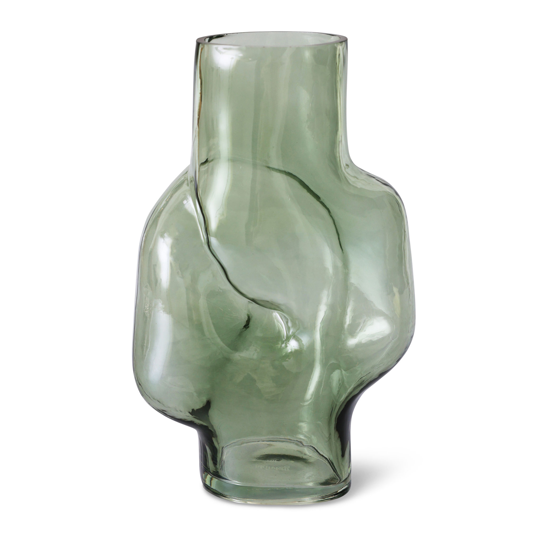 HKliving 有機的なフォルムのガラス製フラワーベース Gleam 高さ32cm オリーブグリー・・・