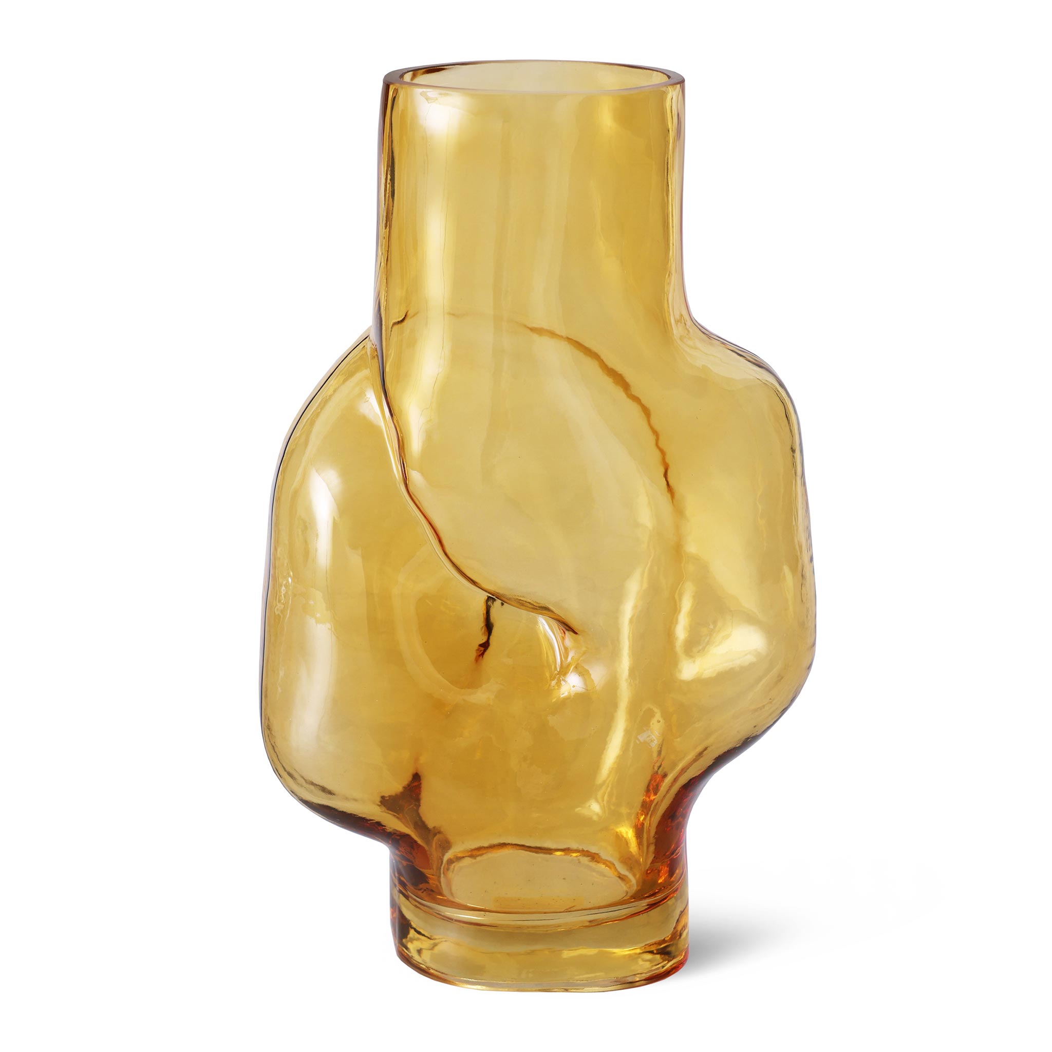 HKliving 有機的なフォルムのガラス製フラワーベース Gleam 高さ32cm アンバーイエロ・・・
