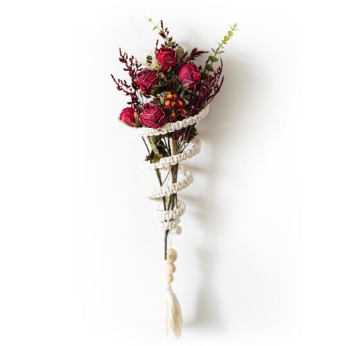 ORANGESCE 「ボヘミアン夢花」造花花束と純手織りのボヘミアンフラワーベース、フラワーインテリ・・・