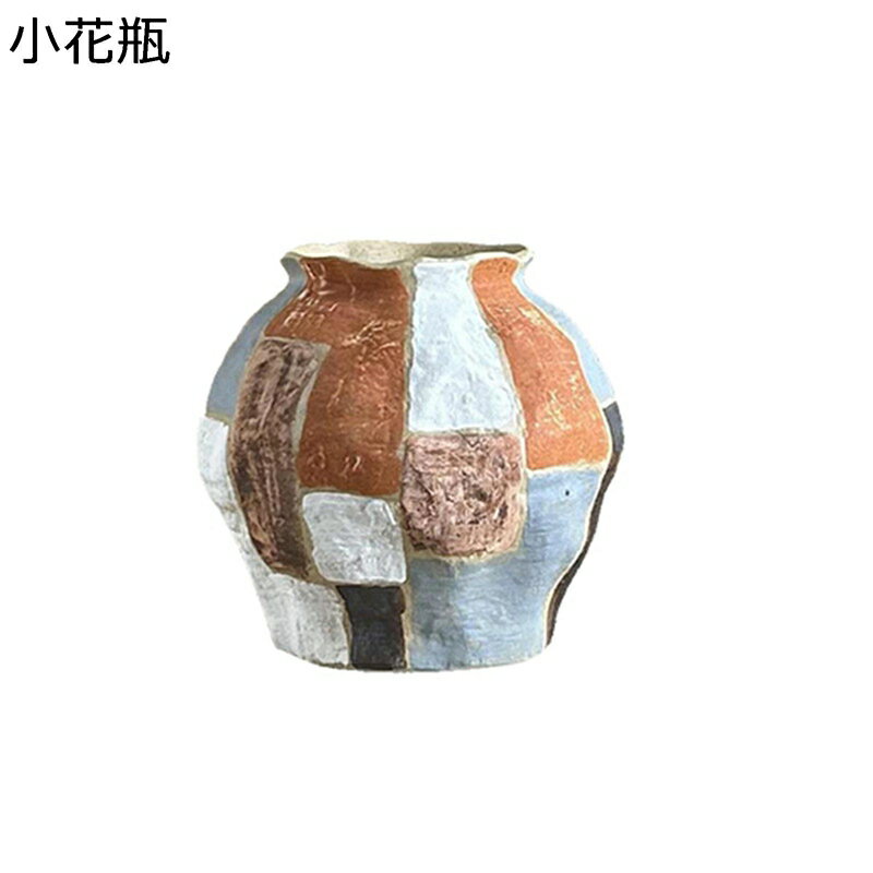 花瓶 花器 パッチワーク 異形 不規則 手作り 切り替え ボヘミア風 エスニック 陶器花器 セラミッ・・・