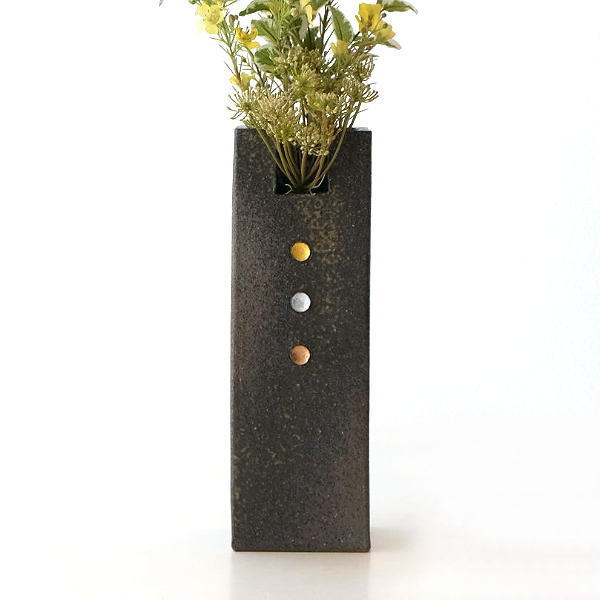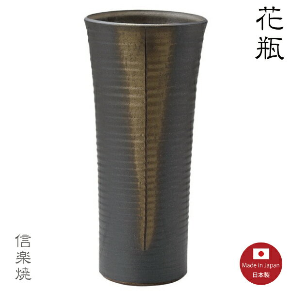 【花瓶 陶器】一条金彩 花瓶 花器 花入 モダン 陶器 おしゃれ 生け花 信楽焼 【日本製】