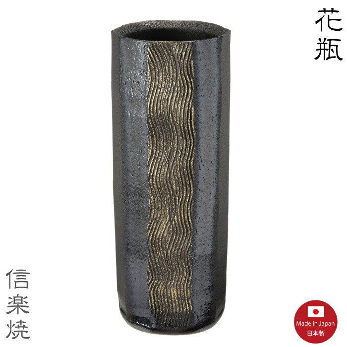 【陶器花瓶】波紋金彩 黒(小) 花瓶 花器 花入 モダン 黒 陶器 おしゃれ 生け花 信楽焼 【日本・・・
