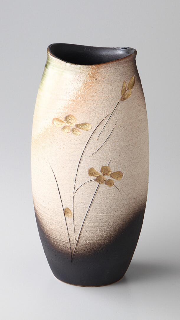 【陶器花瓶】金彩春ラン 花瓶 花器 花入 モダン 陶器 信楽焼 【日本製】