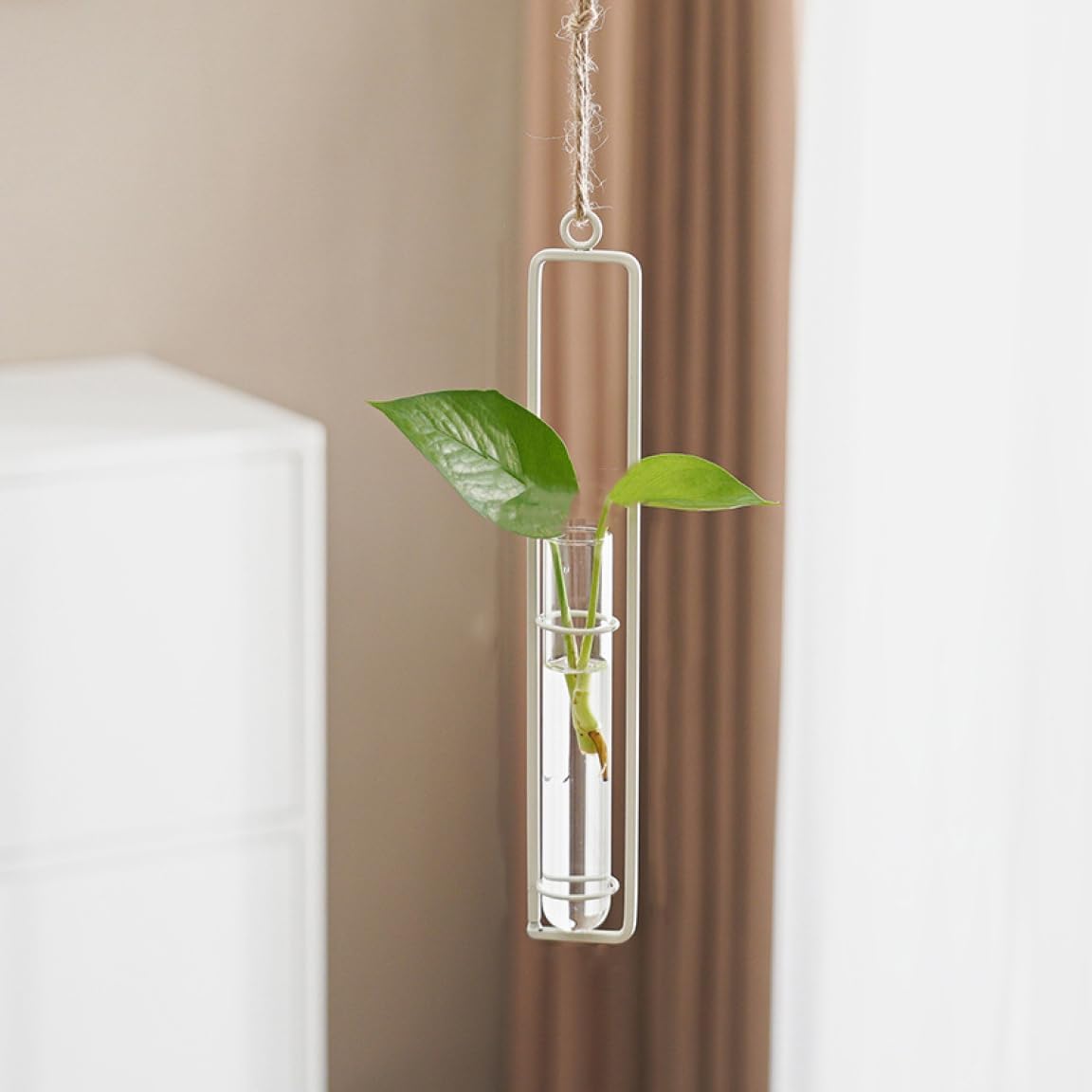 花瓶壁掛け透明金属枠水耕栽培花瓶フラワーベース一輪挿し水栽培ガラス管おしゃれ壁ガーデニングひし形