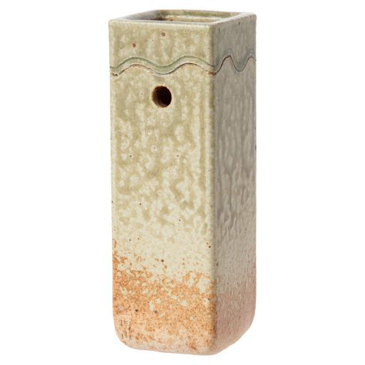 丸伊製陶信楽焼へちもん花瓶フラワーベース一輪挿し壁掛け置き型兼用角型緑陶器MR-M163