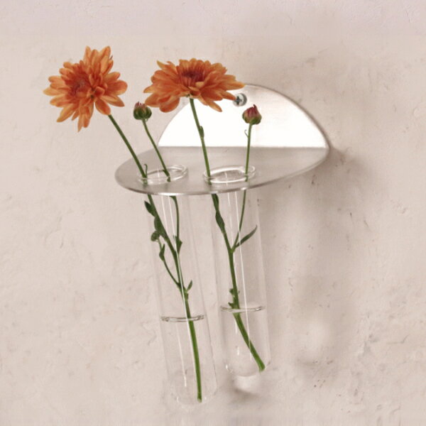 一輪挿し フラワーベース 花瓶 ガラス 壁掛け おしゃれ ギフト 試験管 アルミベース 2連 ダブル