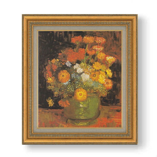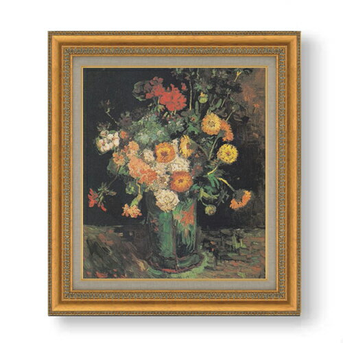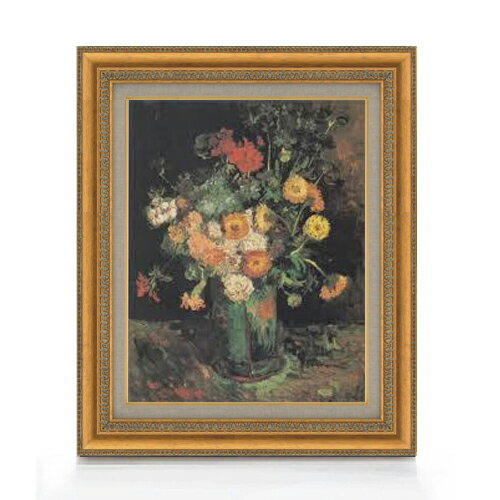 【油絵 直筆仕上げ】ゴッホ ヒャクニチソウのある花瓶 F10 【額入り】 絵画 販売 10号 油彩 ・・・