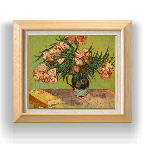 【油絵 直筆仕上げ】ゴッホ キョウチクトウのある花瓶と本 F8 【額入り】 絵画 販売 8号 油彩 ・・・