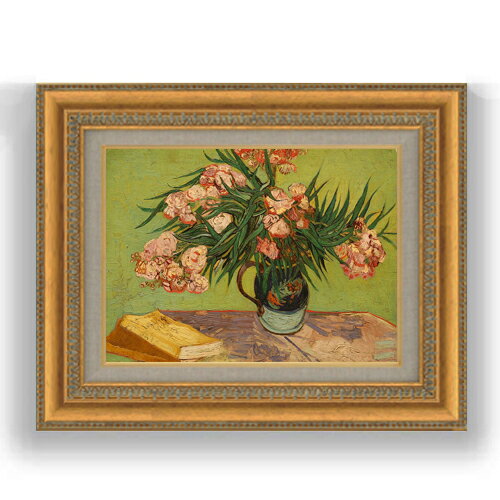 【油絵 直筆仕上げ】ゴッホ キョウチクトウのある花瓶と本 F4 【額入り】 絵画 販売 4号 油彩 ・・・