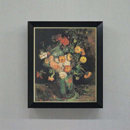 【油絵 直筆仕上げ】ゴッホ ヒャクニチソウとゼラニウムのある花瓶 F8 【シンプルフレーム】 絵画 ・・・