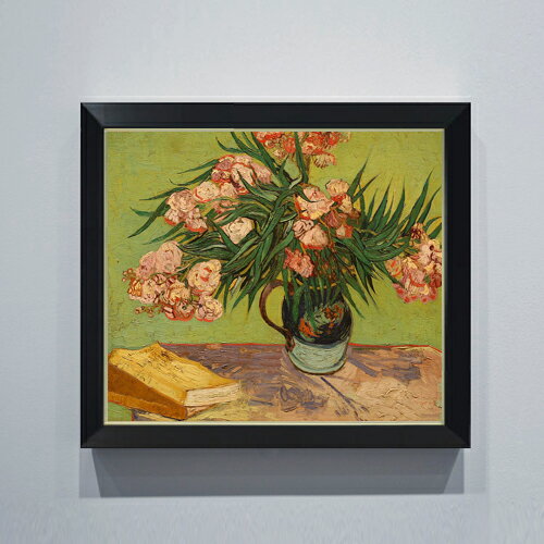 【油絵 直筆仕上げ】ゴッホ キョウチクトウのある花瓶と本 F10 【シンプルフレーム】 絵画 販売 ・・・