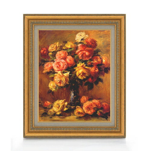 【油絵 直筆仕上げ】ルノワール ローズと花瓶 F10 【額入り】 絵画 販売 10号 油彩 静物画 ・・・
