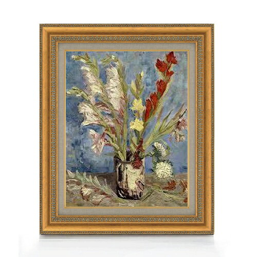【油絵 直筆仕上げ】ゴッホ グラジオラスのある花瓶 F6 【額入り】 絵画 販売 6号 油彩 静物画・・・