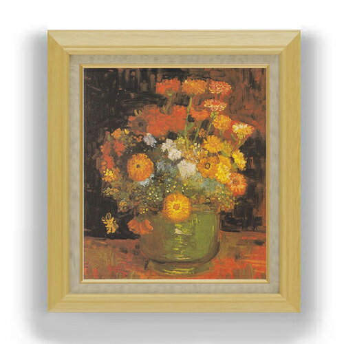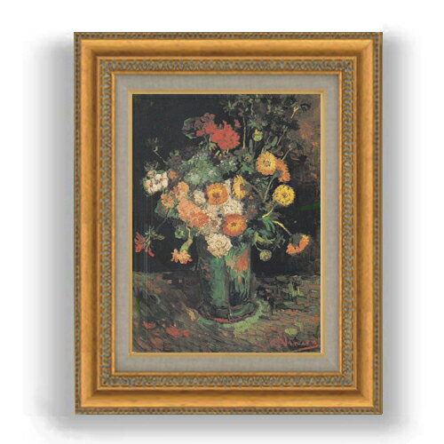 【油絵 直筆仕上げ】ゴッホ ヒャクニチソウとゼラニウムのある花瓶 F4 【額入り】 絵画 販売 4号・・・