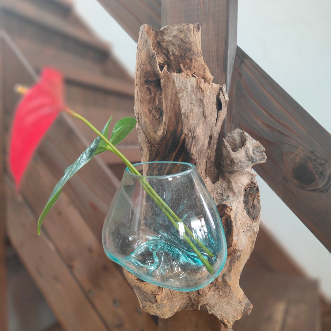 【インテリア雑貨 おしゃれ バリ風】流木ガラス ドリフトウッド 置物 花瓶 フラワーベース 土台つき・・・