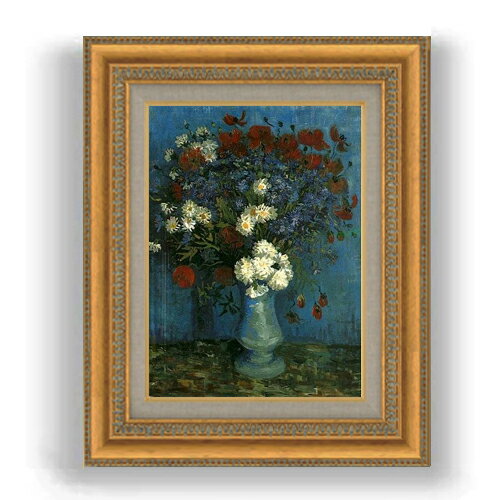 【油絵 直筆仕上げ】ゴッホ ヤグルマギクとヒナゲシのある花瓶 F4 【額入り】 絵画 販売 4号 油・・・