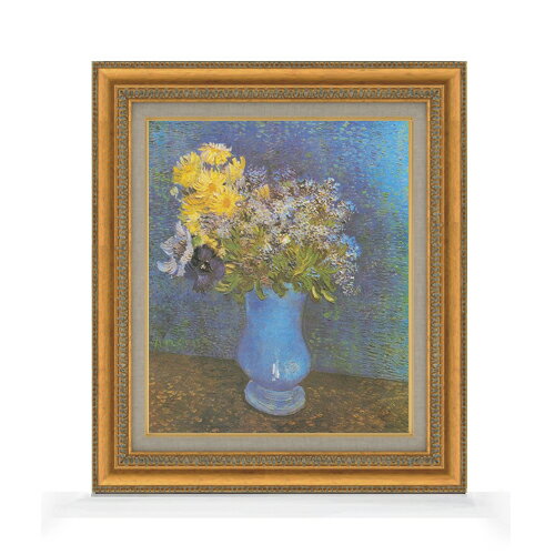 【油絵 直筆仕上げ】ゴッホ ライラック、ヒナギクとアネモネのある花瓶 F8 【額入り】 絵画 販売 ・・・