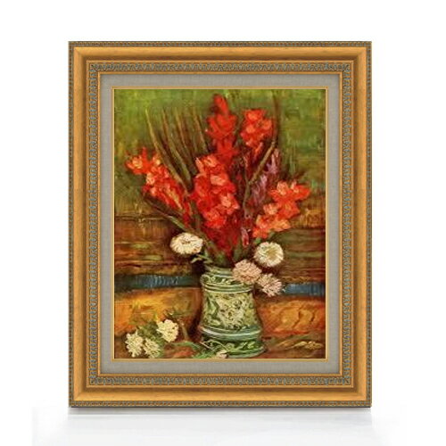 【油絵 直筆仕上げ】ゴッホ 赤いグラジオラスのある花瓶 F4 【額入り】 絵画 販売 4号 油彩 風・・・