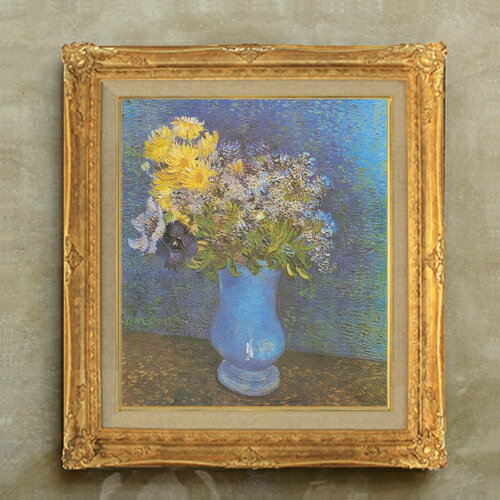 【油絵 直筆仕上げ】ゴッホ ヒナギクとアネモネのある花瓶 F3 【額入り】 絵画 販売3号 油彩 風・・・
