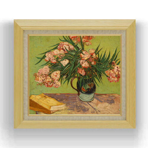 【油絵 直筆仕上げ】ゴッホ キョウチクトウのある花瓶と本 F10 【額入り】 絵画 販売 10号 油・・・