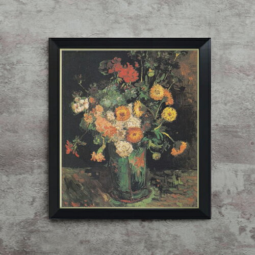 【油絵 直筆仕上げ】ゴッホ ヒャクニチソウとゼラニウムのある花瓶 F10 【シンプルフレーム】 絵画・・・