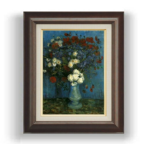 【油絵 直筆仕上げ】ゴッホ ヤグルマギクとヒナゲシのある花瓶 F4 【額入り】 絵画 販売 4号 油・・・