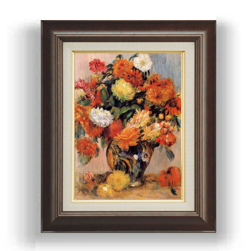 【油絵 直筆仕上げ】ルノワール Vase of Chrysanthemums F8 【シンプルフレー・・・