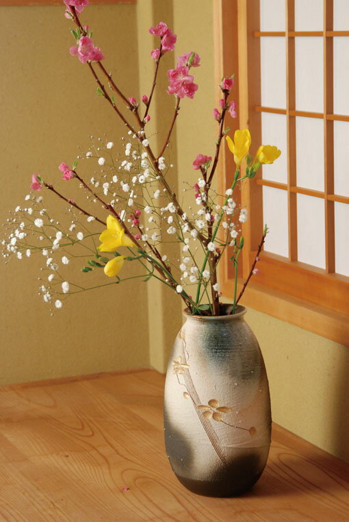 【送料無料】【smtb-kd】信楽焼 「金彩花彫長花入」 花器 花生け 花瓶 インテリア 陶器 焼物・・・