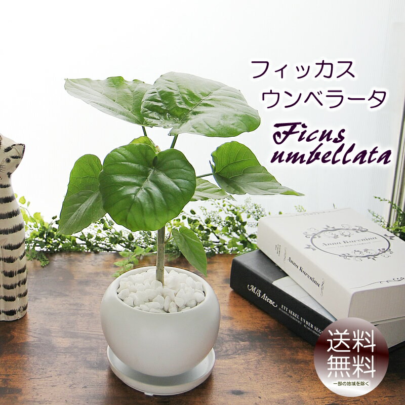 フィカス ウンベラータ 観葉植物 白丸陶器鉢 送料無料 プレゼント ギフト 新築祝い 引越し祝い 開・・・