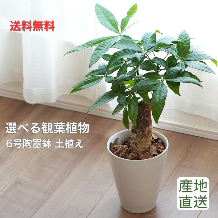 【産地直送】 選べる 観葉植物 パキラ モンステラ ゴムの木 スパティフィラム 白 陶器鉢植え 6号・・・