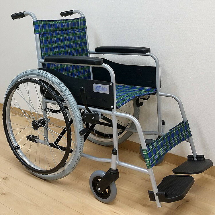 美和商事 自走式標準形車いす スタンダード(スチール)ノーパンク/チェックグリーン/-(代引不可)【・・・
