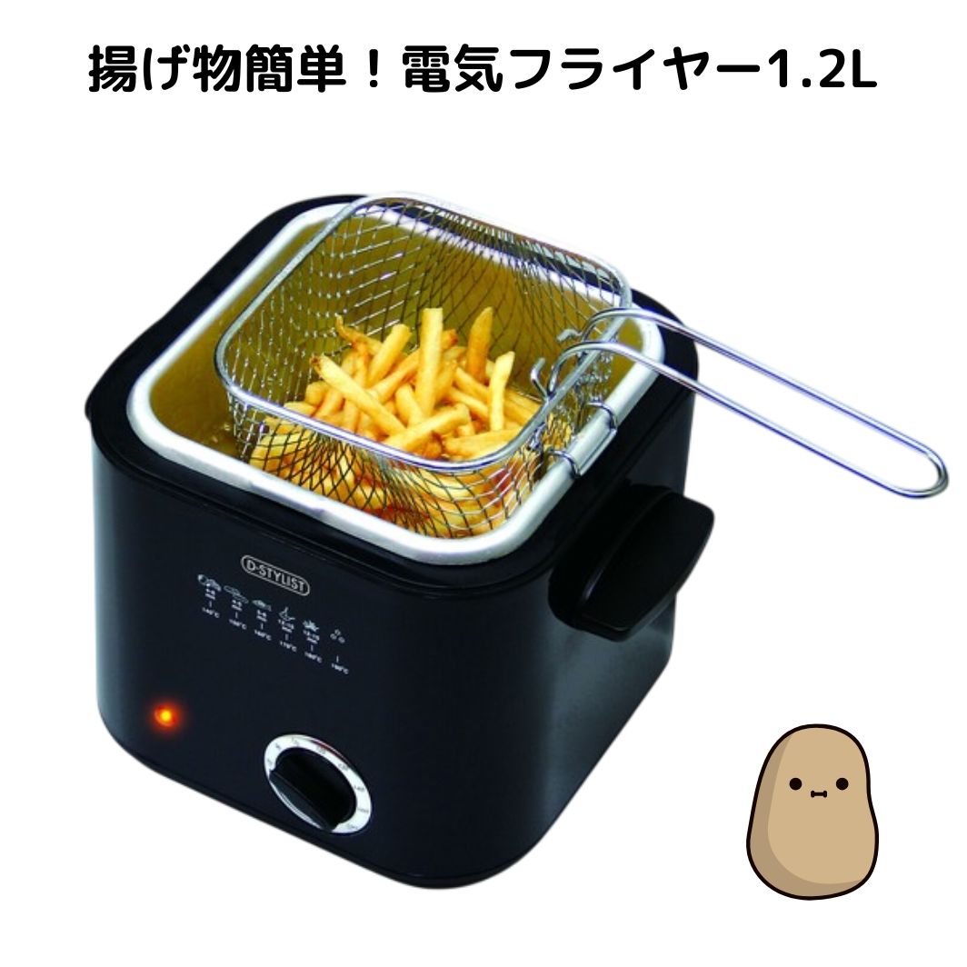 揚げ物簡単!電気フライヤー1.2L ブラック 卓上フライヤー 揚げもの からあげ 串カツ 串揚げ 新・・・
