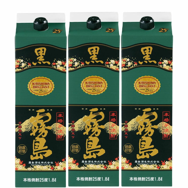 【3本セット】本格 芋 焼酎 黒霧島 チューパック 25% 1800ml 霧島酒造 紙パック 芋焼酎・・・