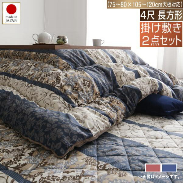 長く使える日本製 家族で囲める大判ボリュームこたつ布団 くつろぎ 掛布団&敷布団2点セット 4尺長方・・・