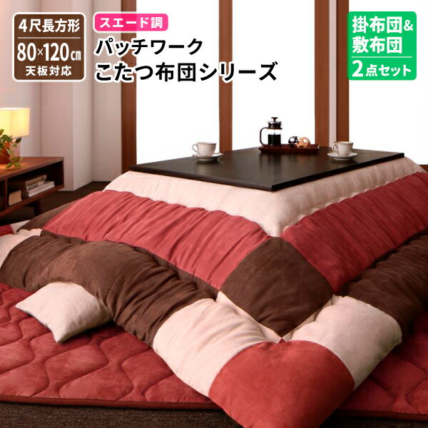 スウェード調パッチワークこたつ布団 icoi イコイ 掛布団&敷布団2点セット 4尺長方形(80×1・・・