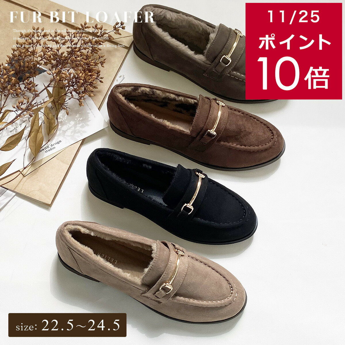 200円クーポン11/27迄★サイズ交換無料★ローファー 履きやすい 歩きやすい ファー ビット付き・・・