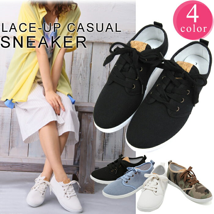 スニーカー レースアップ ペタンコ スニーカー レディース ローヒール レディース スニーカー【新作・・・