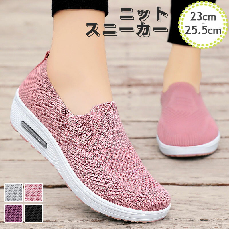 スニーカー スリッポン ニット 柔らか 美脚 伸び ストレッチ 軽い 軽量 柔軟 メッシュ 通気性 ・・・