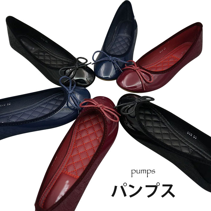 【送料無料】パンプス レディース ぺたんこ スリッポン フラットシューズ エナメル調 PUレザー フ・・・