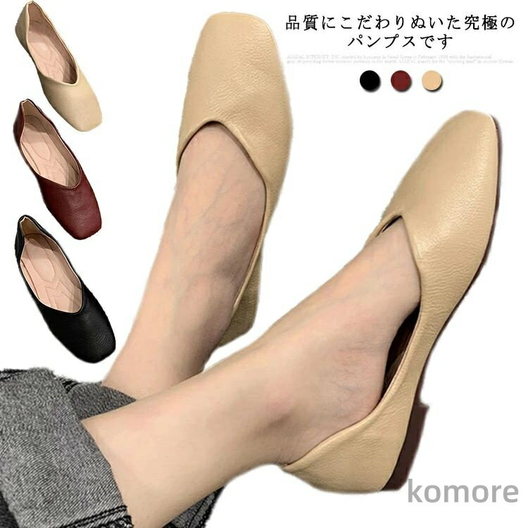 【特価・アウトレット】レディース ローヒール パンプス ブラック ポインテッドトゥ フラットパンプス・・・